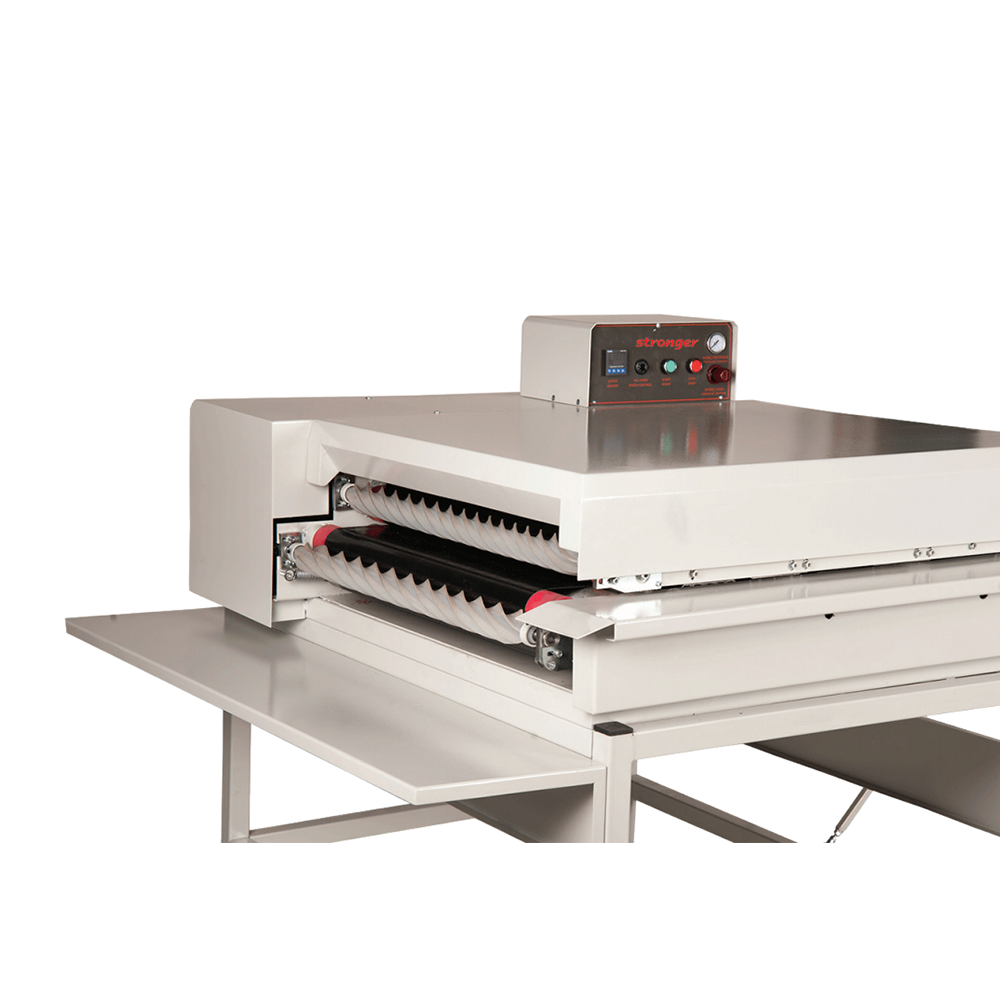 Konfeksiyon sektöründe tela yapıştırma ve ütüleme amaçlı kullanılır. Uygulama alanı daha çok pantolon, gömlek ve t-shirt telalarının yapıştırılmasıdır. Bant kontrol ve basınç sistemi pnömatiktir. Preste bulunan otomatik bant kontrol sistemi sayesinde bantın kaymasını engellemiş olup yine bu sistem dahilinde bantın gerginliği giderilerek bantın uzun ömürlü olması sağlanmıştır. Modellere göre bant genişliği, 20cm, 40cm ve 60cm olarak değişmektedir. Mini tela yapıştırma presleri, alt ve üst rezistans grupları olmak üzere iki ısıtma grubundan oluşmaktadır. Elektronik termostat ayesinde, ısı istenilen ayarda kalabilmektedir. Preste bulunan dönerli sıyırıcılar vasıtasıyla bantın temizlenmesi ve telaların toplanması sağlanır.